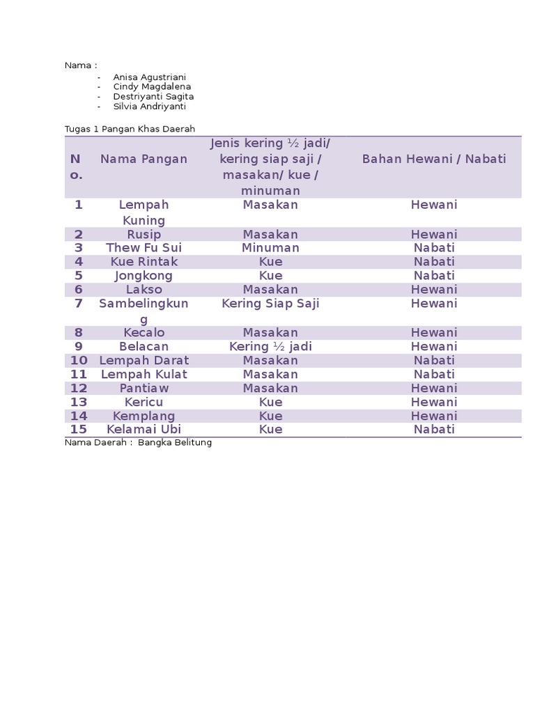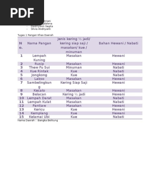 tabel tantangan makanan khas daerah, sebutkan 5! - Brainly.co.id