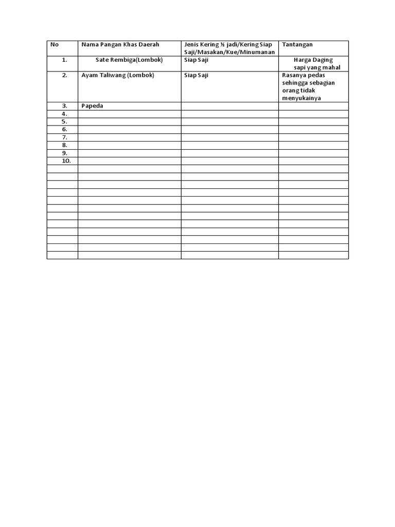 Tantangan makanan khas daerah. Tuliskan dalam bentuk tabel berikut.