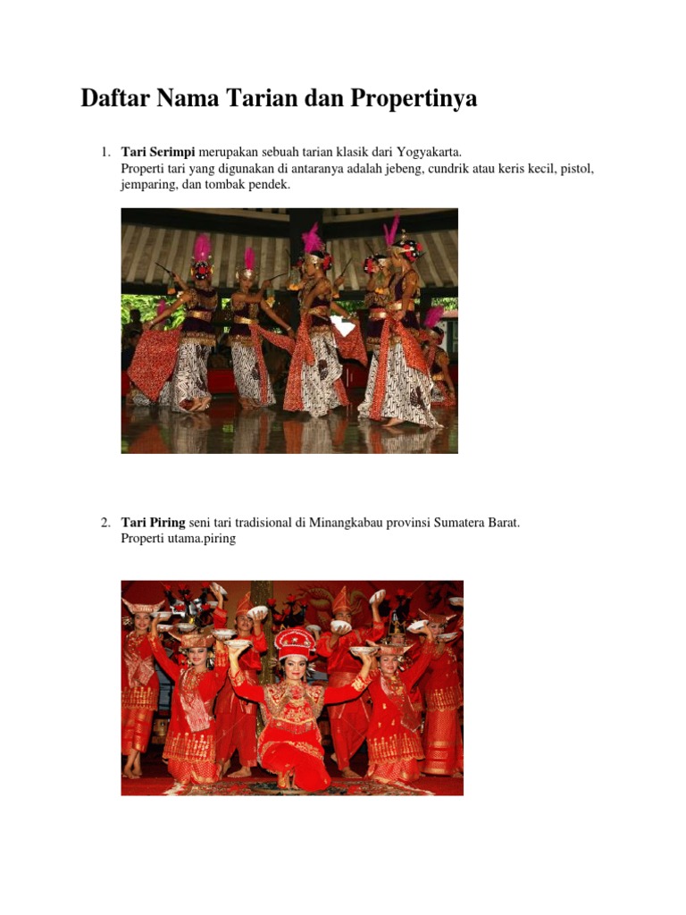 Daftar Nama Tarian Dan Propertinya