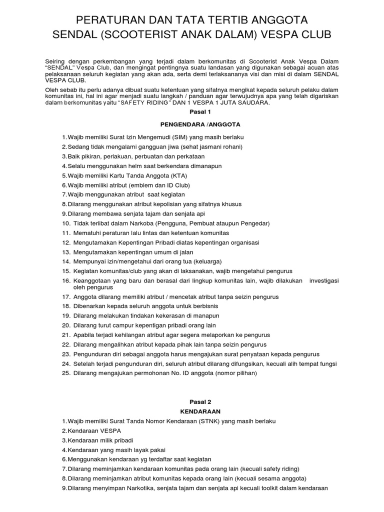 Peraturan Dan Tata Tertib Anggota. Sendal Docx