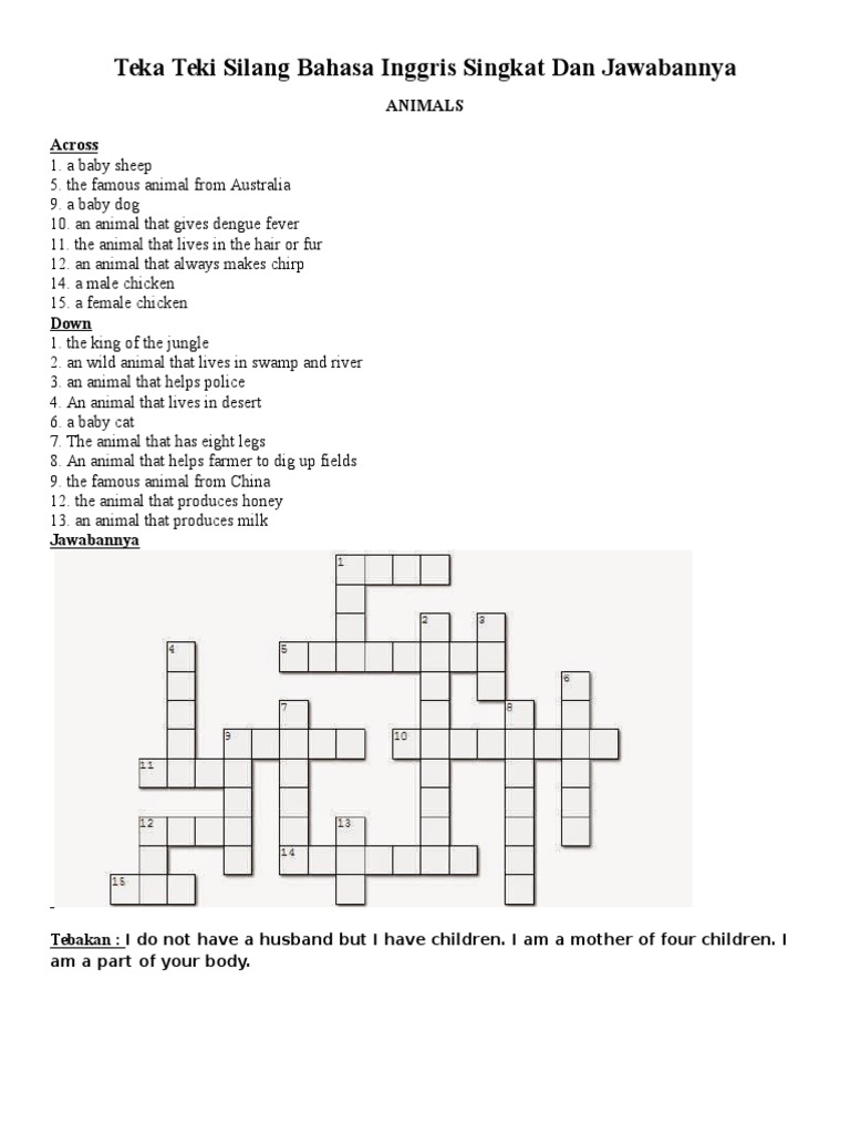 Teka Teki Silang Bahasa Inggris Dan Jawabannya Singkat | Ruang …