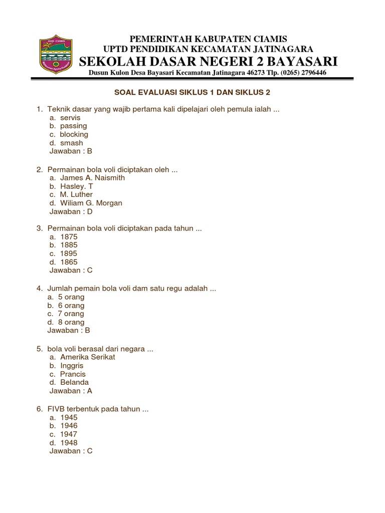 Soal Bola Voli Beserta Jawabannya