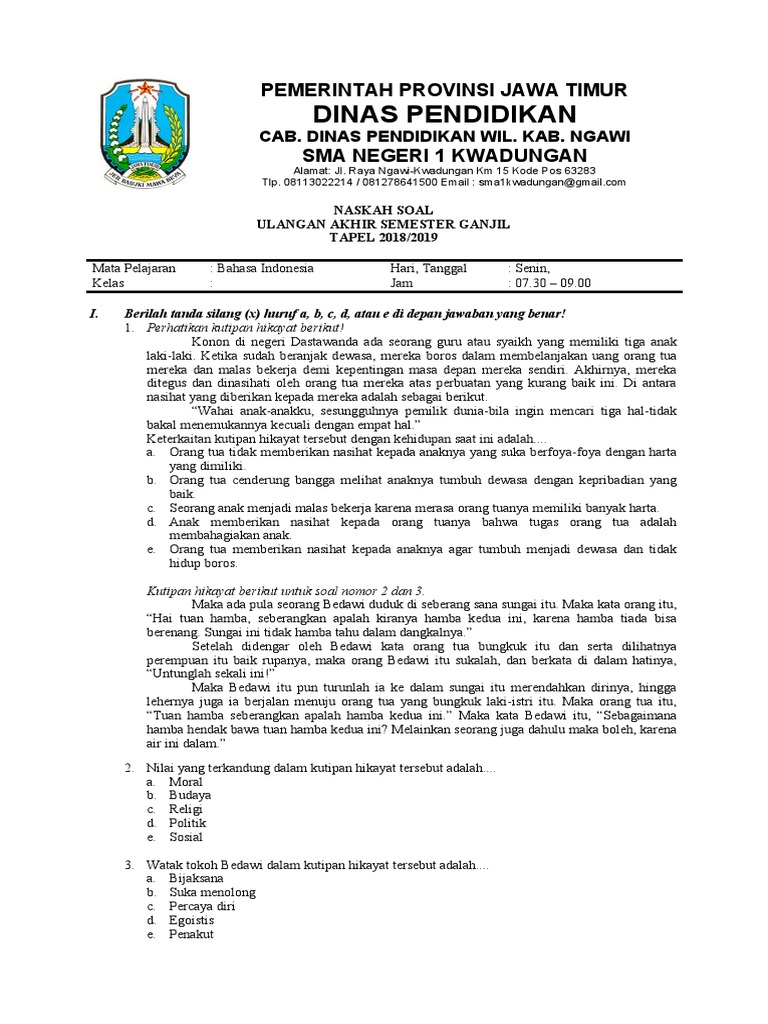 Soal-soal Bahasa Indonesia Kelas X semester Ganjil 2019-2020.docx