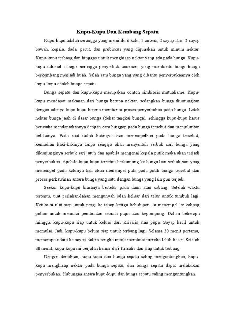 Teks Eksposisi Tentang Bunga Sepatu Dan Kupu Kupu
