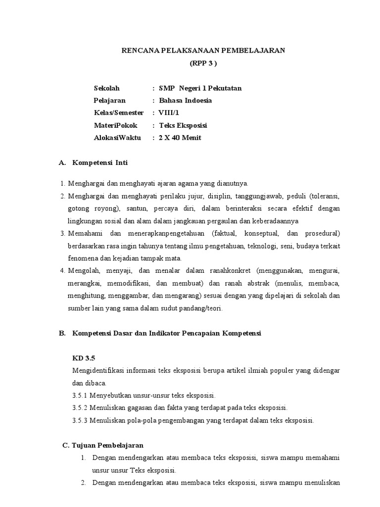 RPP 3 Teks Eksposisi