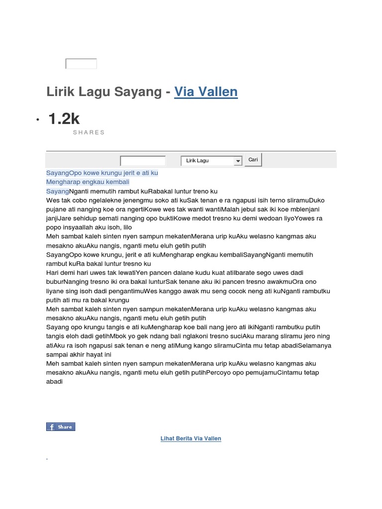 Cari Lirik Lagu Sayang Via Vallen - Berita Online Tepatnews.com