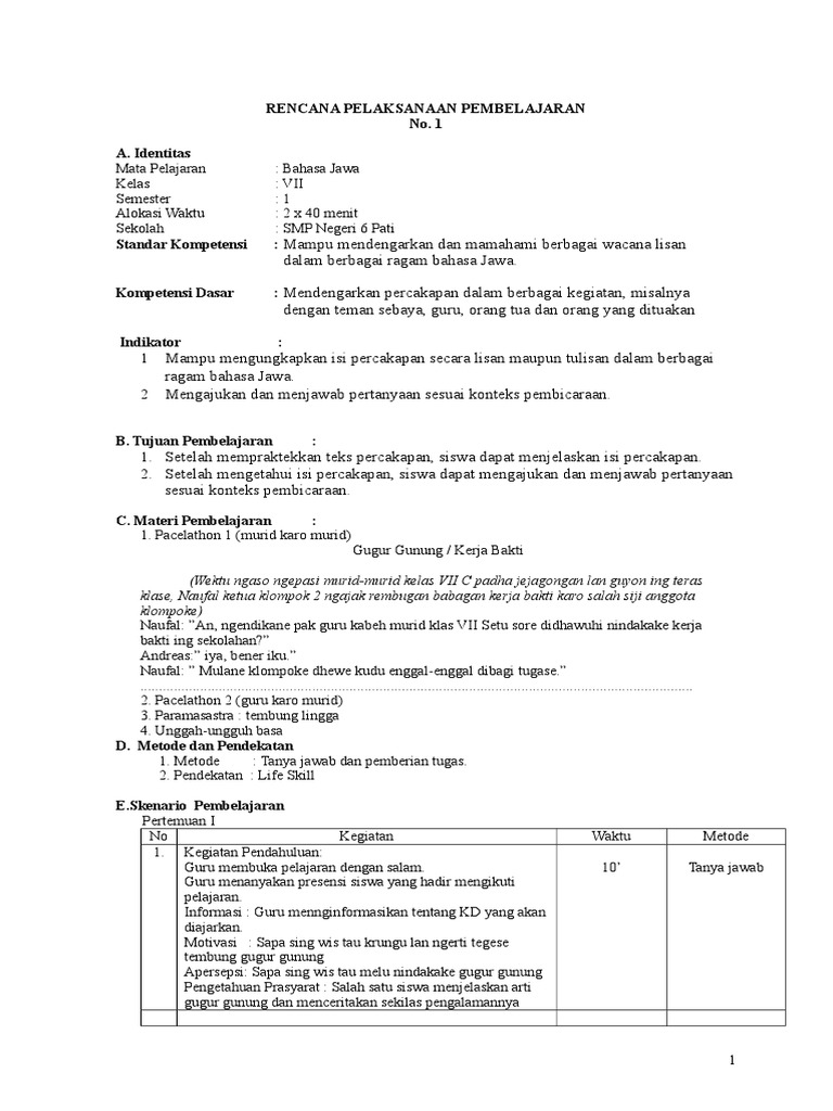 PENINGKATAN KETERAMPILAN BERBICARA BAHASA JAWA RAGAM KRAMA DENGAN METODE ANALISIS KESALAHAN BERBAHASA PADA SISWA KELAS VII SMP P