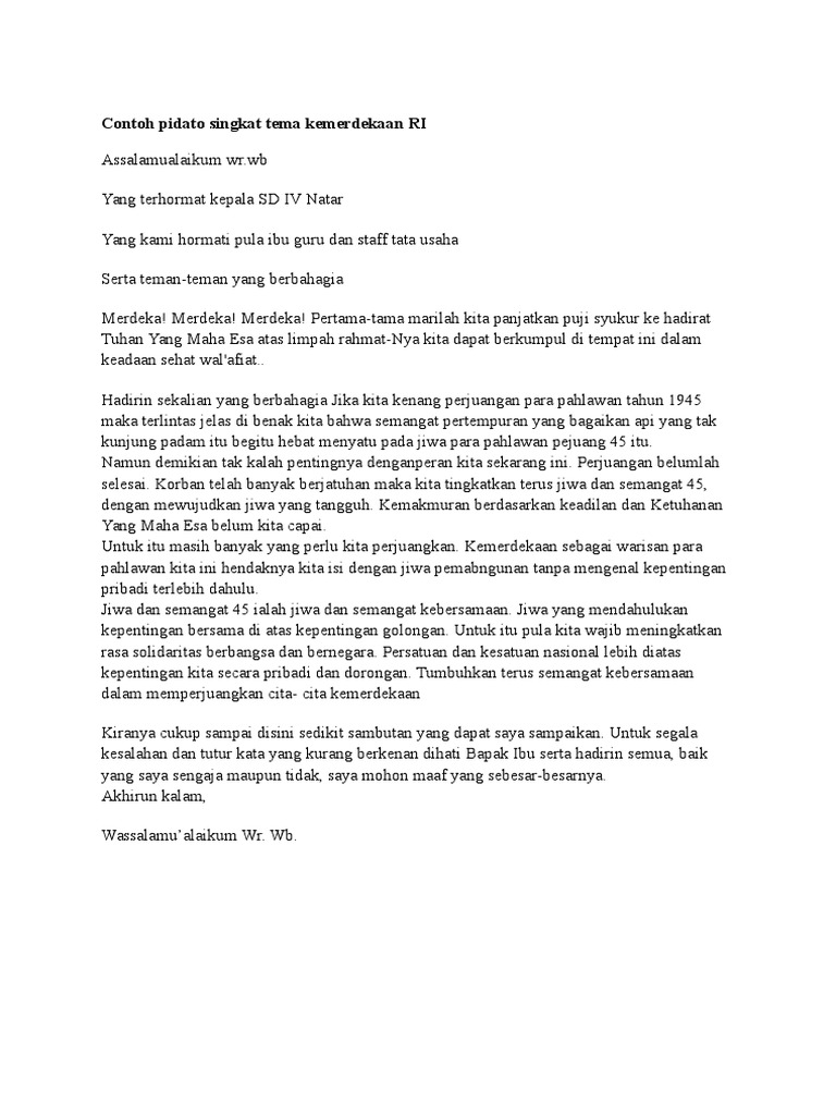 Tolong Berikan Contoh Pidato Singkat Tentang Hari Kemerdekaan! - Brainly.co.id