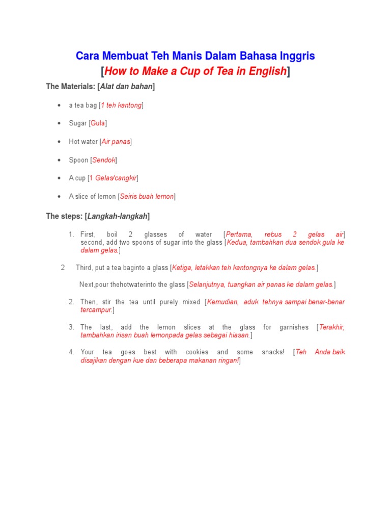 Langkah Langkah Membuat Teh Dalam Bahasa Inggris