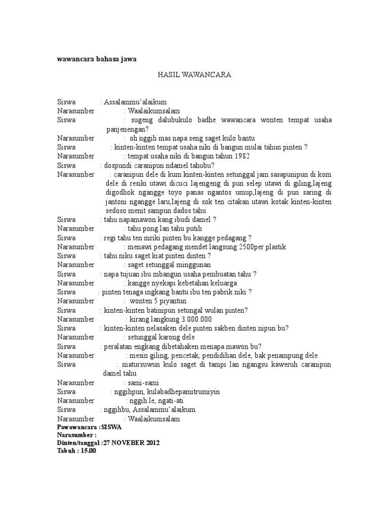 Contoh Wawancara Bahasa Jawa Dengan Guru - Bagikan Contoh