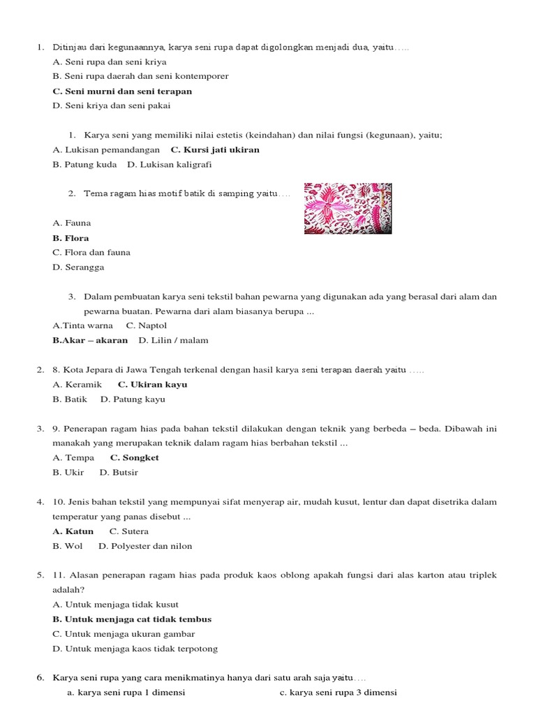 Penerapan Ragam Hias Pada Bahan Tekstil Quiz - Quizizz