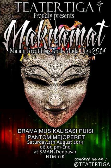 Teater TIGA on Twitter: “Mengangkat tema KARNAVAL, diselenggarakan pada Sabtu, 2 Agustus 2014, pkl: 18.00-selesai @SMAN3Denpasar. HTM : 12k http://t.co/myDmlfXjdU”