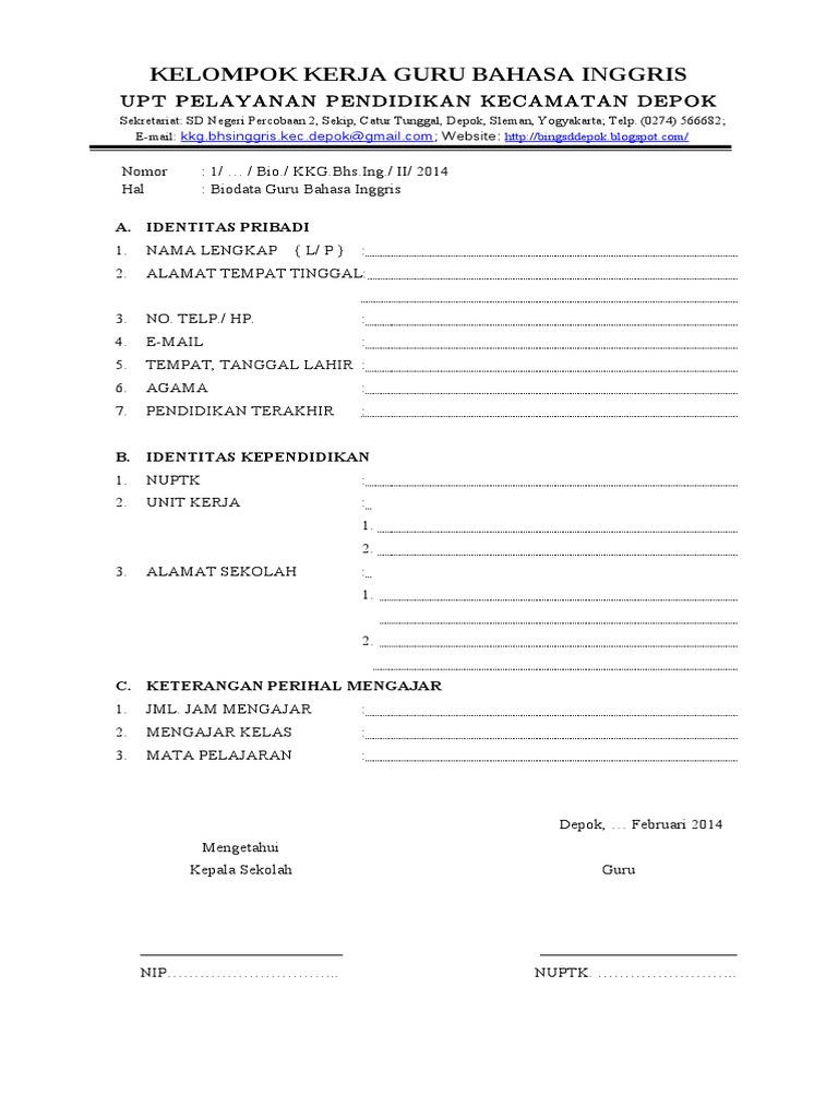 Contoh Biodata Diri Dalam Bahasa Inggris | Sederet.com