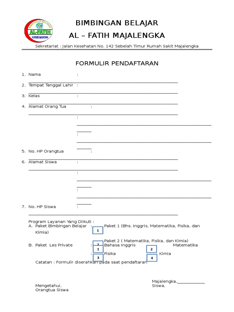 Kak,kasih tau 1 contoh donk formulir dlam bahasa inggris.Formulir …