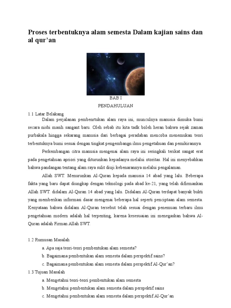 Proses Terbentuknya Alam Semesta Dalam Kajian Sains Dan Al Qur