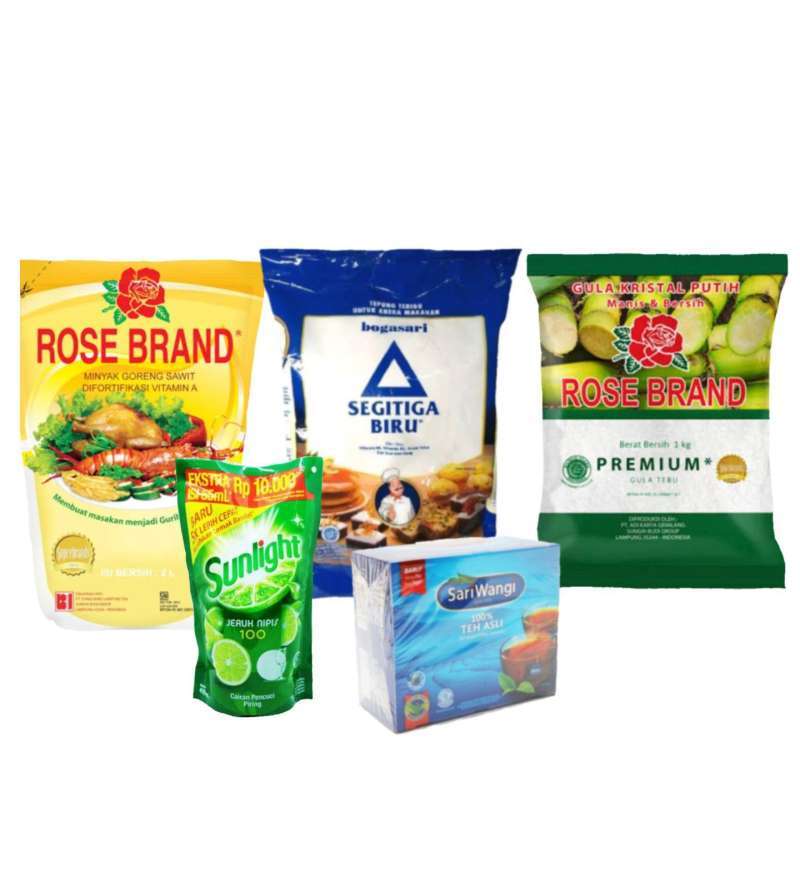 Jual Minyak Rosebrand 1lt, Tepung terigu segitiga biru 1kg, gula putih rosebrand 1kg, Teh sariwangi 1box isi 50bag, Sunligt 435ml Online Januari 2021 | Blibli