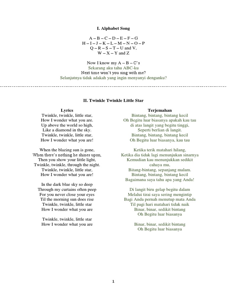 Lirik Lagu Anak-Anak Twinkle Twinkle Litle Star dan Terjemahannya …