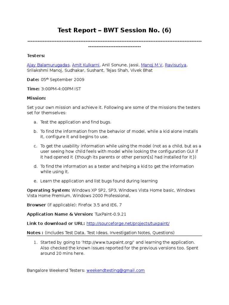 Test Report – BWT Session No. (6): Ajay Balamurugadas Amit …