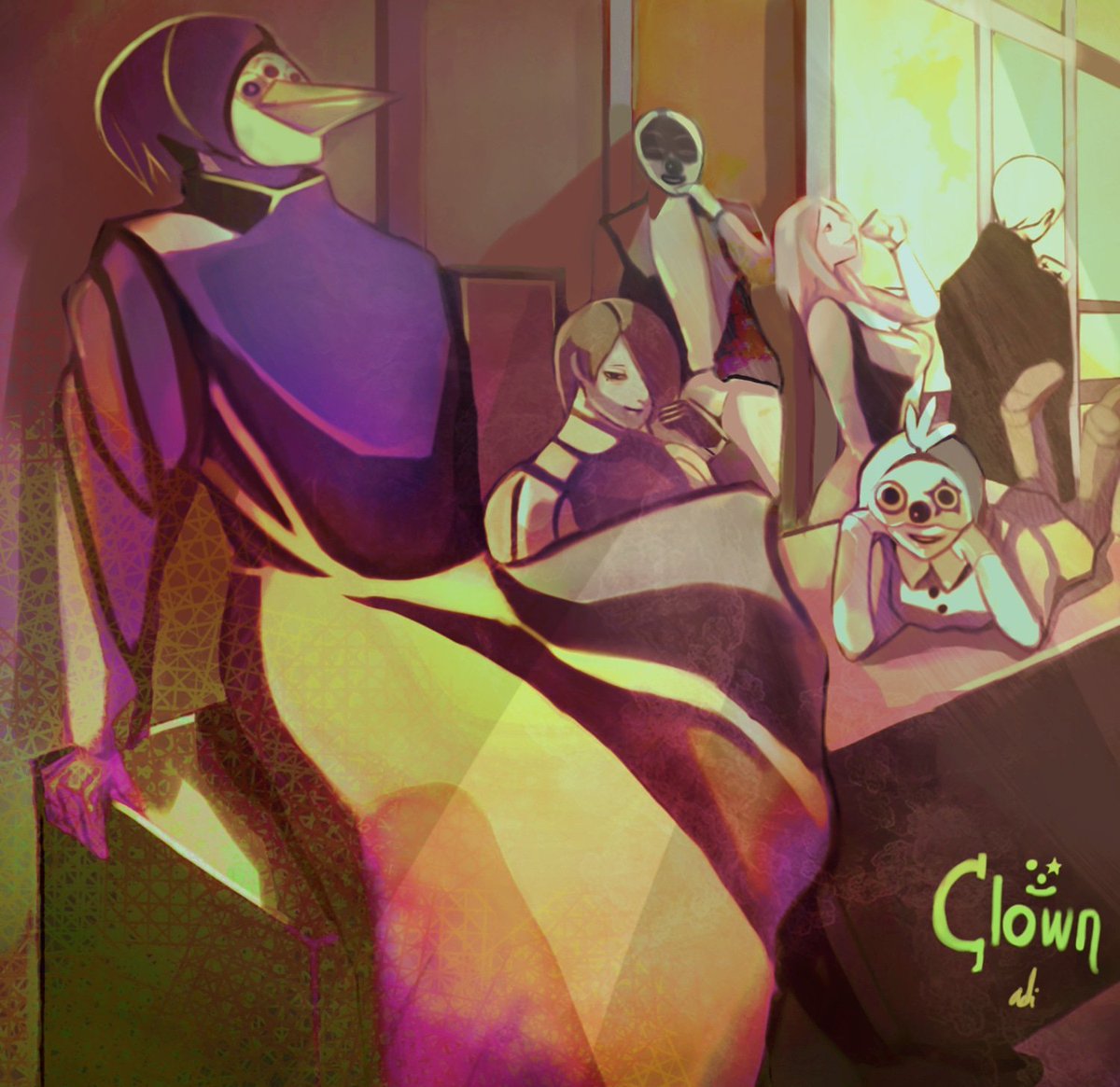Adisunata on Twitter: “Clown #Tokyoghoul #tokyoghoulre #illustration #art #FANART #Clown #furuta #uta #donatto #roma #itori #nico… "
