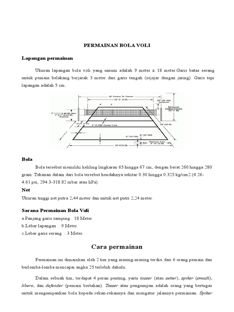 Ukuran Lapangan Bola Voli Lengkap Gambar dan Keterangannya …