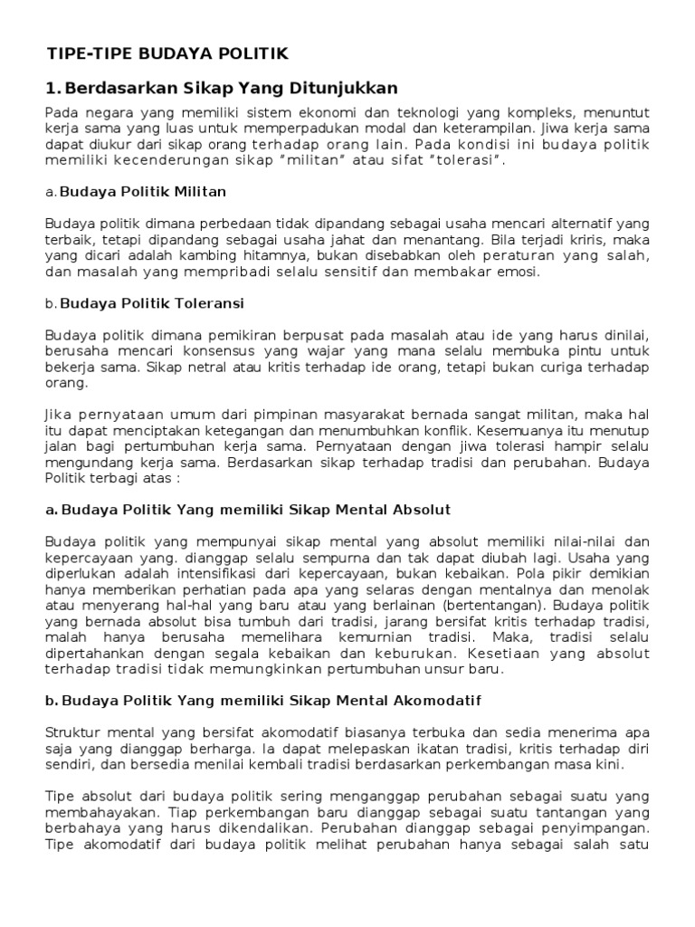Apa saja tipe-tipe budaya politik? - Politik & Pemerintahan …