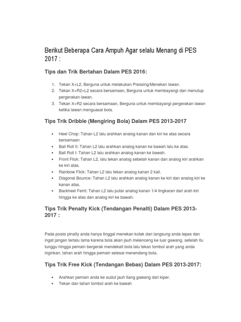 Tips & Trik PES 2017/2018 Tingkat Dewa Agar Selalu Menang Saat …