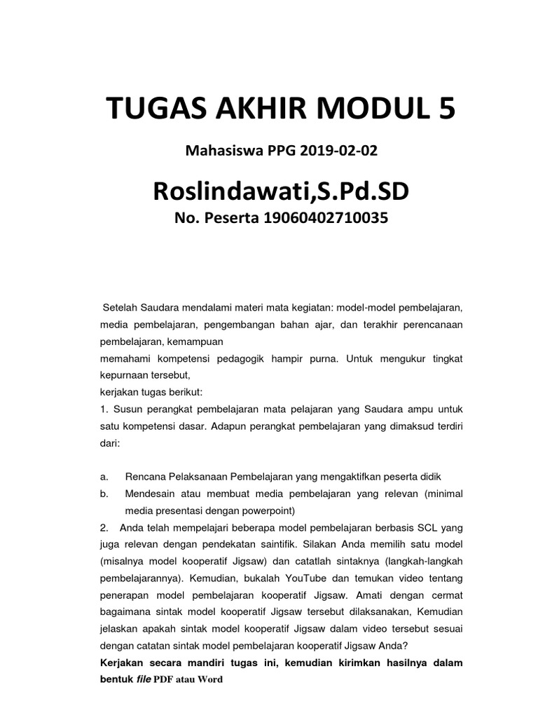 Soal dan Kunci Jawaban Tugas Akhir Modul Bahasa Indonesia PPG 2020 …