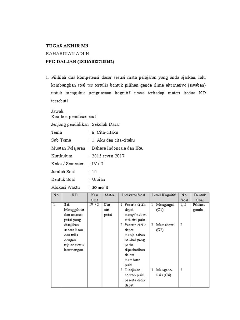 Soal dan Kunci Jawaban Tugas Akhir Modul 4 PPG 2020 Terbaru …