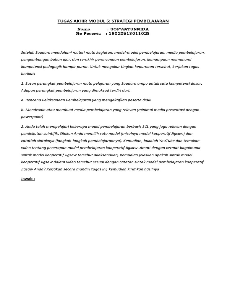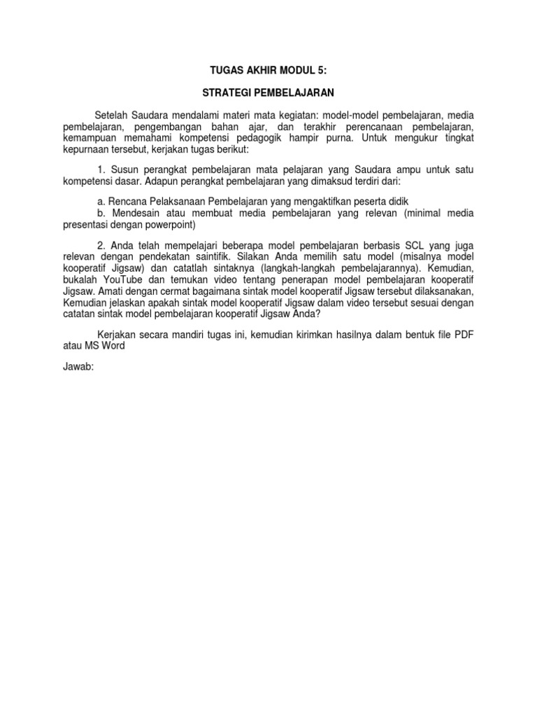 Tugas Akhir Modul 5 Strategi Pembelajaran