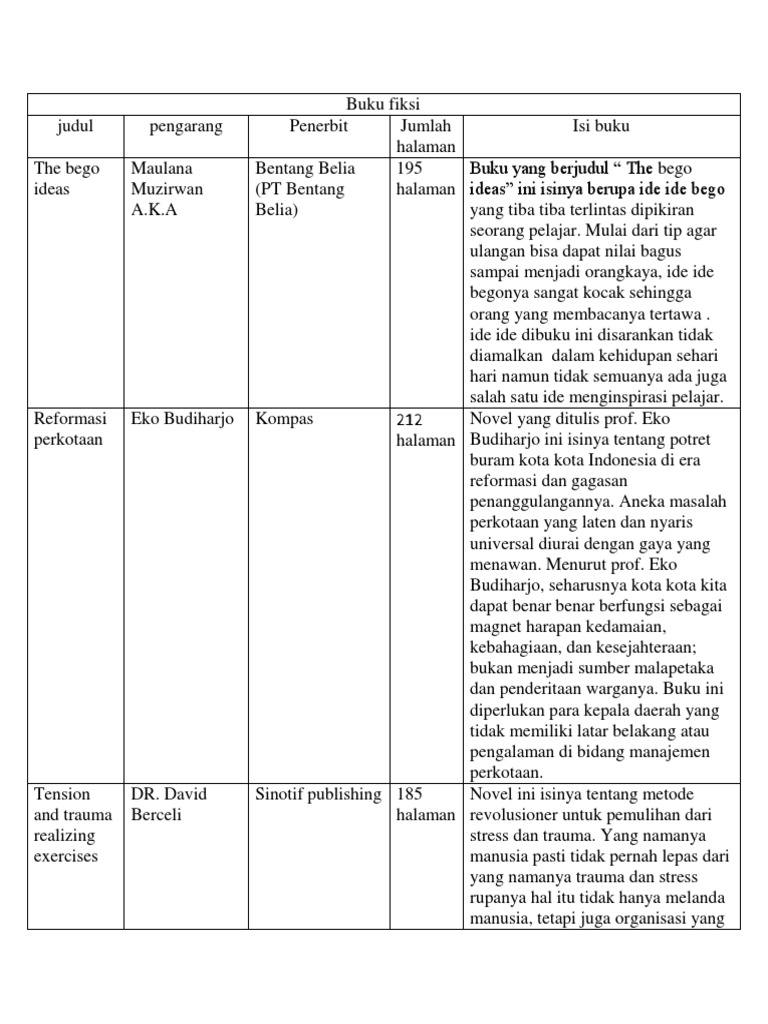 Contoh Tugas Laporan Literasi Buku fiksi | Bahasa Indonesia …