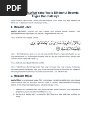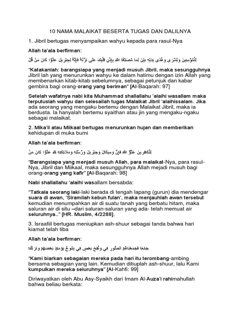 dalil tentang 10 malaikat/tugasnya - Brainly.co.id