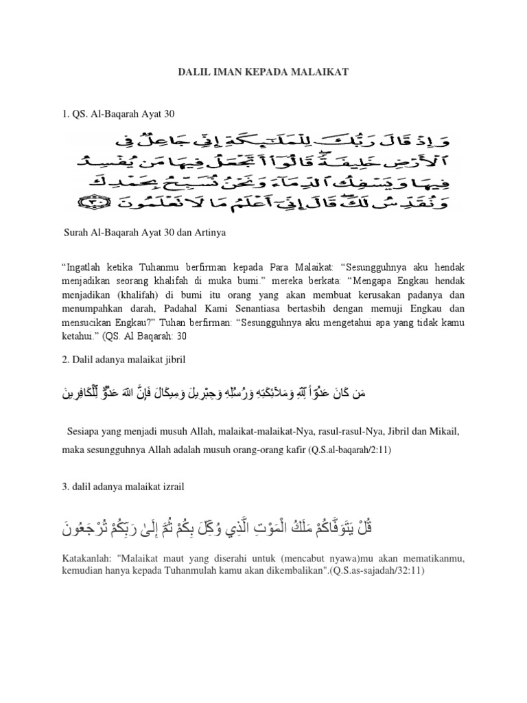 Tuliskan dalil tentang perintah beriman kepada malaikat allah swt …