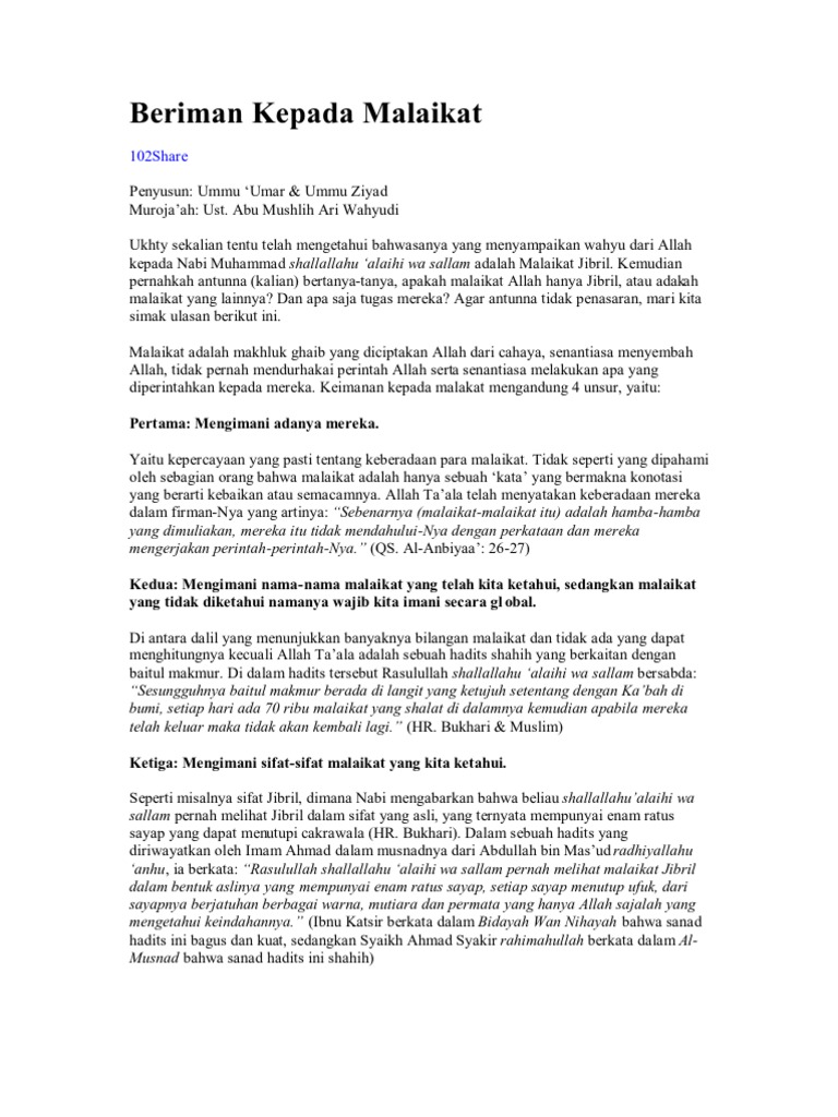 DOC) BERIMAN KEPADA MALAIKAT | Vista Yulistia - Academia.edu
