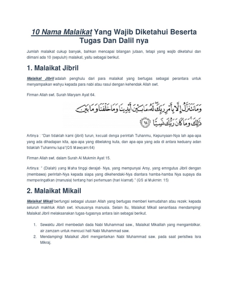 Nama Nama Malaikat & “10 Dalil dan Tugas-nya” | by dosenislam.com …