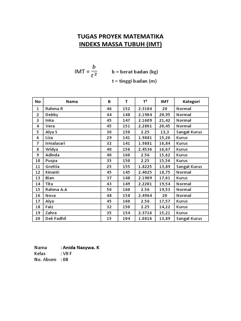 Matematika SMP: TUGAS PROJEK 1 Kelas 7