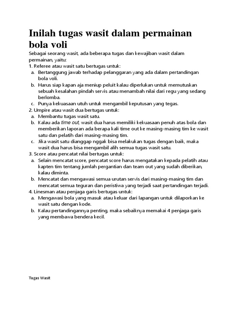 Sebutkan Tugas Kewajiban Dan Wewenang Wasit Dalam Permainan Bola Voli - Sebutkan Itu