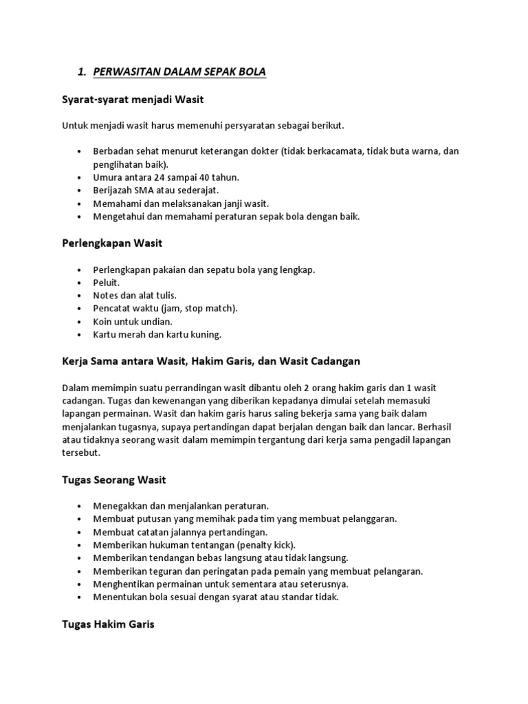 Sebutkan tugas wasit sepak bola menurut pssi? - Brainly.co.id