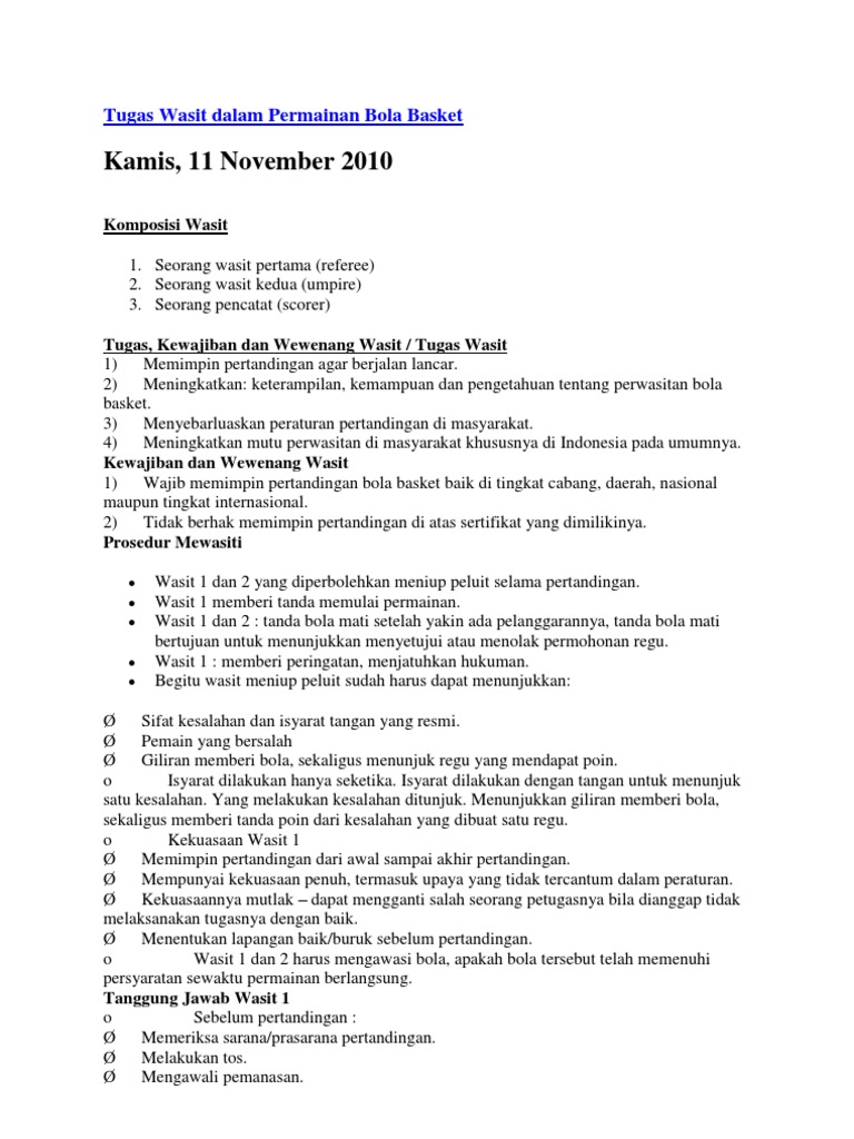 Tugas Wasit Dalam Permainan Bola Basket