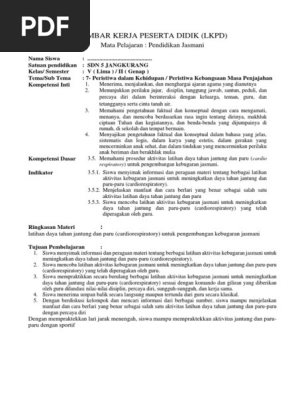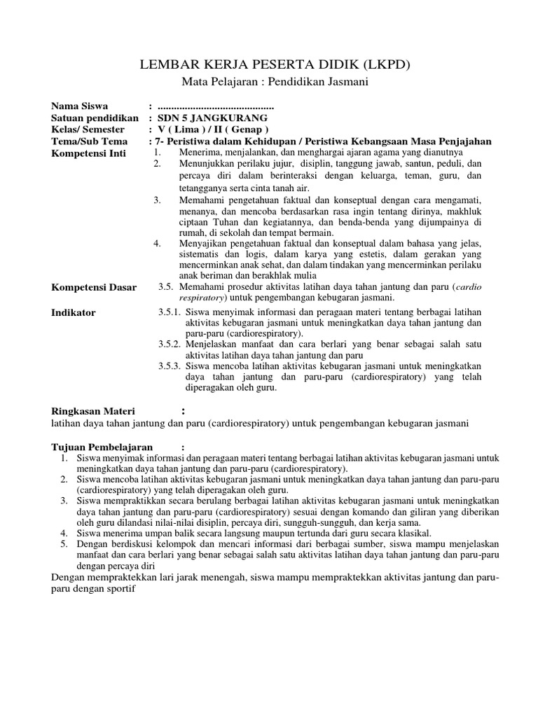Lembar Kerja Peserta Didik (Lkpd): Mata Pelajaran: Pendidikan Jasmani