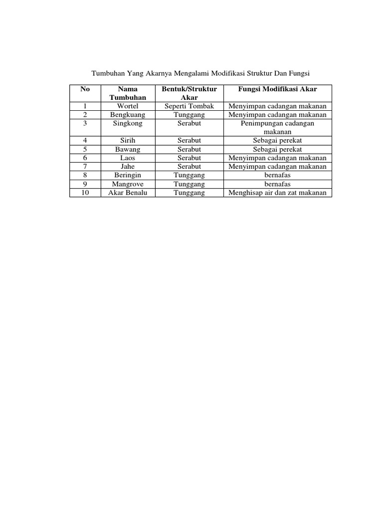 sebutkan 10 tumbuhan yang akarnya mengalami modifikasi struktur …