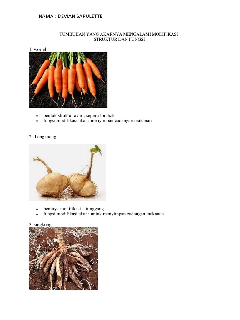 Nama Tumbuhan Bentuk Struktur Akar Fungsi Modifikasi Akar