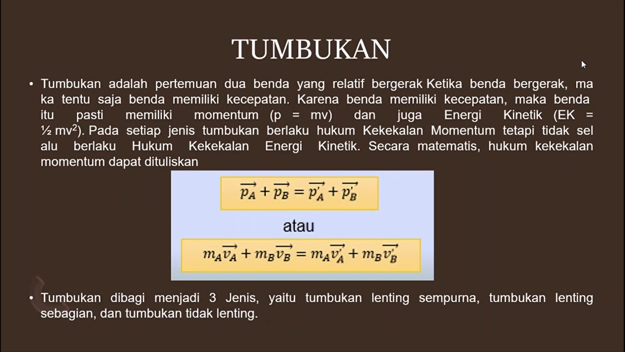 video pembelajaran momentum, impuls dan tumbukan - YouTube