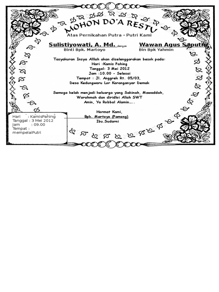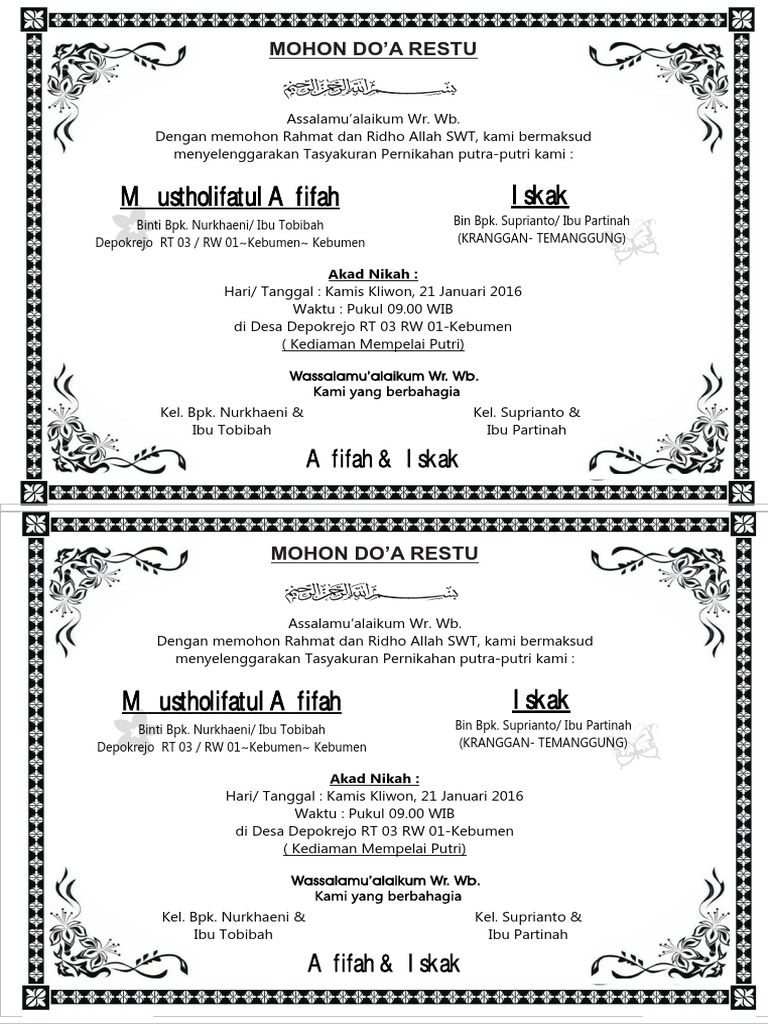 Contoh Format Penulisan Syukuran Pernikahan | Belajar Office