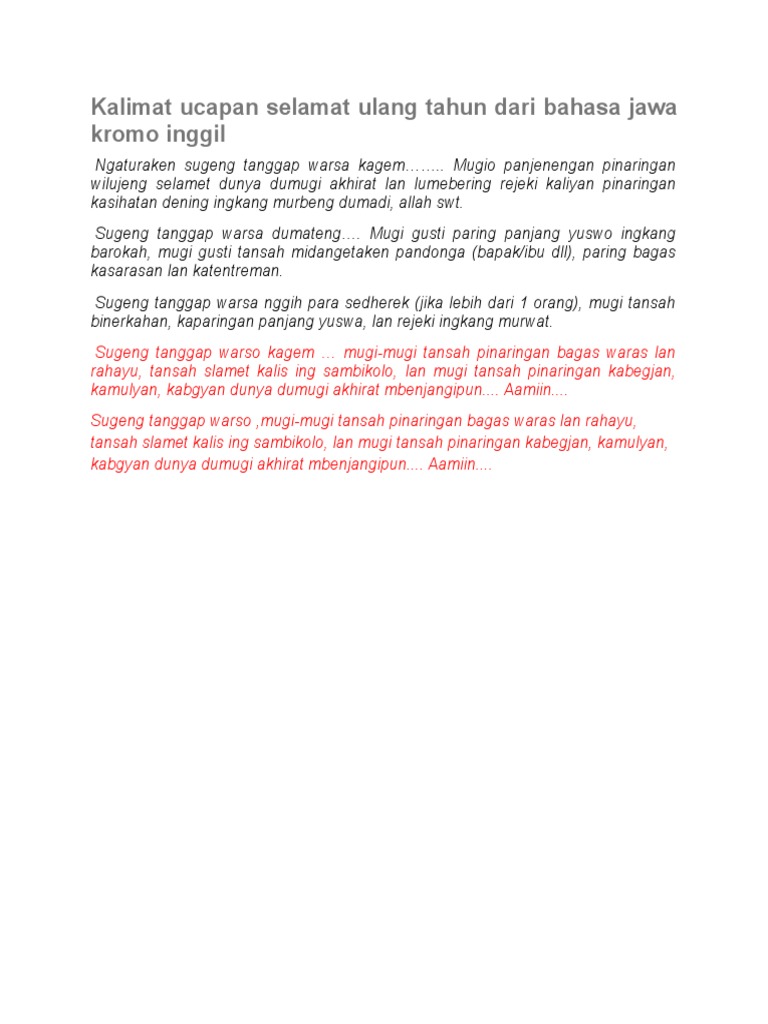 Kalimat Ucapan Selamat Ulang Tahun Dari Bahasa Jawa Kromo Inggil