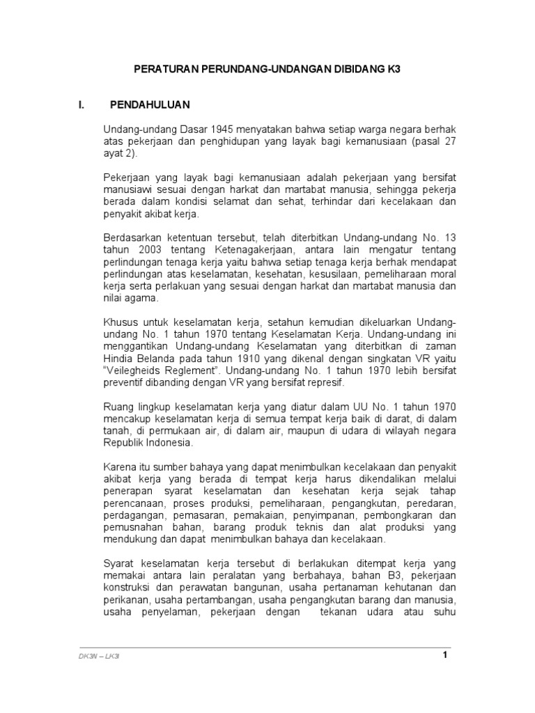 Undang Undang No 1 Tahun 1970 Tentang K3 - Berbagai Tahun