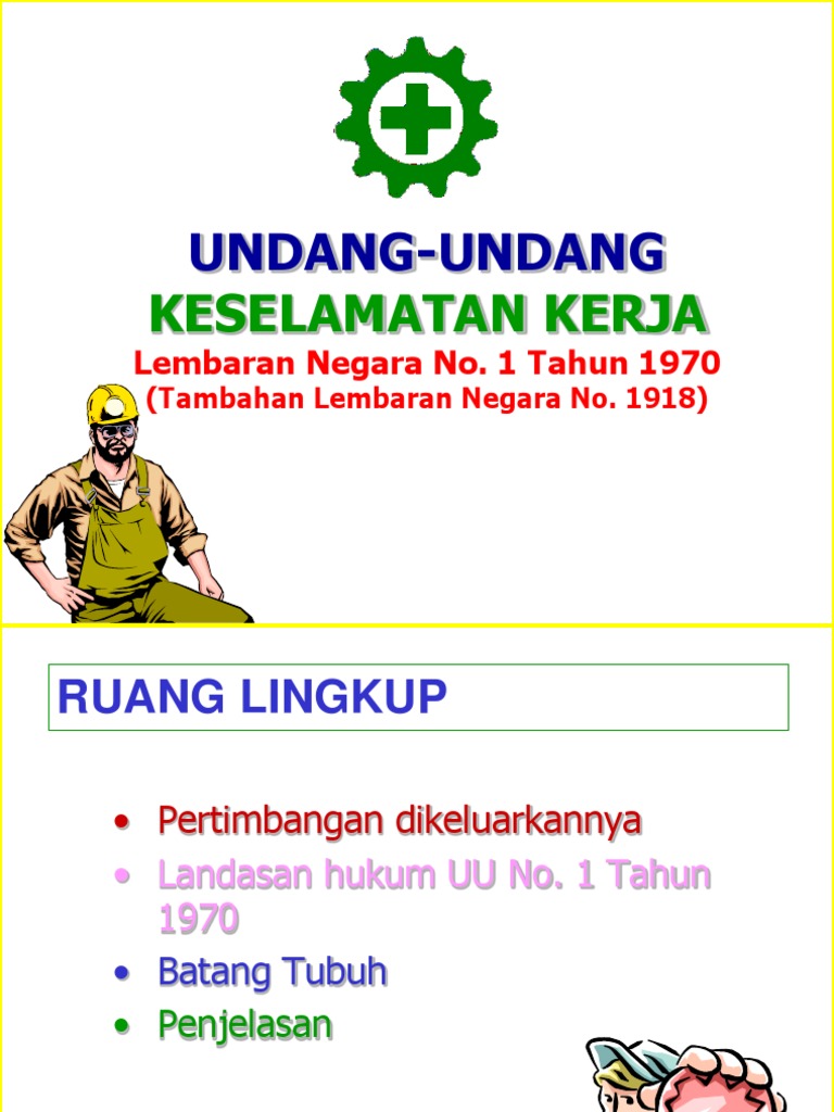 PPT - UNDANG-UNDANG KESELAMATAN KERJA Lembaran Negara No. 1 Tahun …