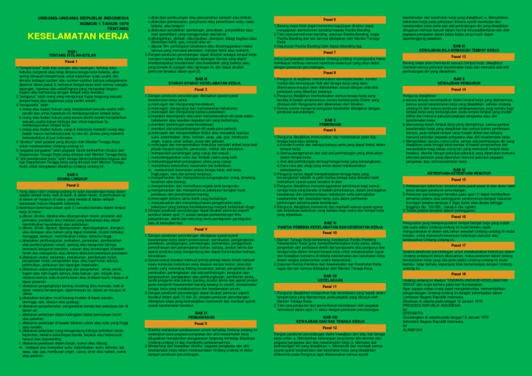 Poster K3 Undang-undang Republik Indonesia Nomor 1 Tahun 1970 …