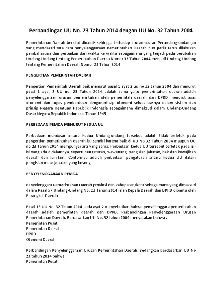 Perbandingan UU 32 2004 Dan UU 23 2014
