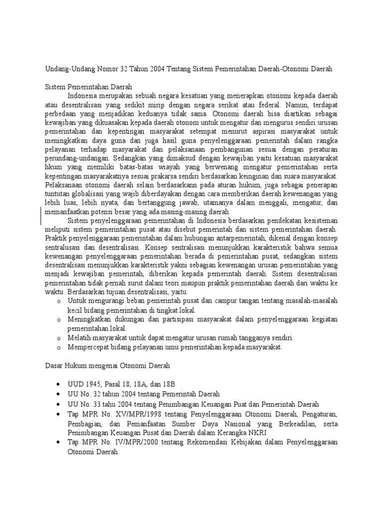 Undang-undang Otonomi Daerah Tahun 2004 | Dinas Perpustakaan Dan …