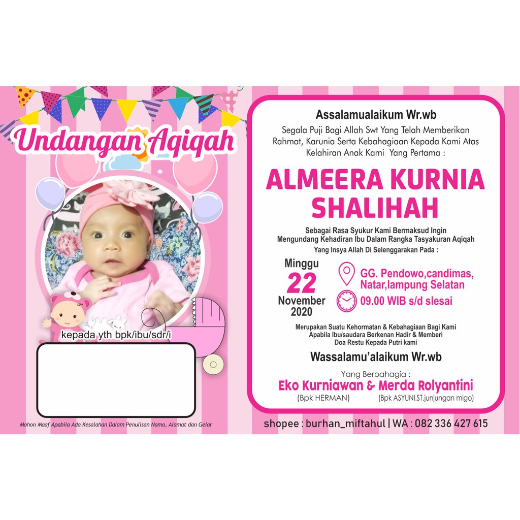 Undangan Aqiqah / Tasyakuran / Ultah Harga Murah 1000 Rupiah | Shopee Indonesia